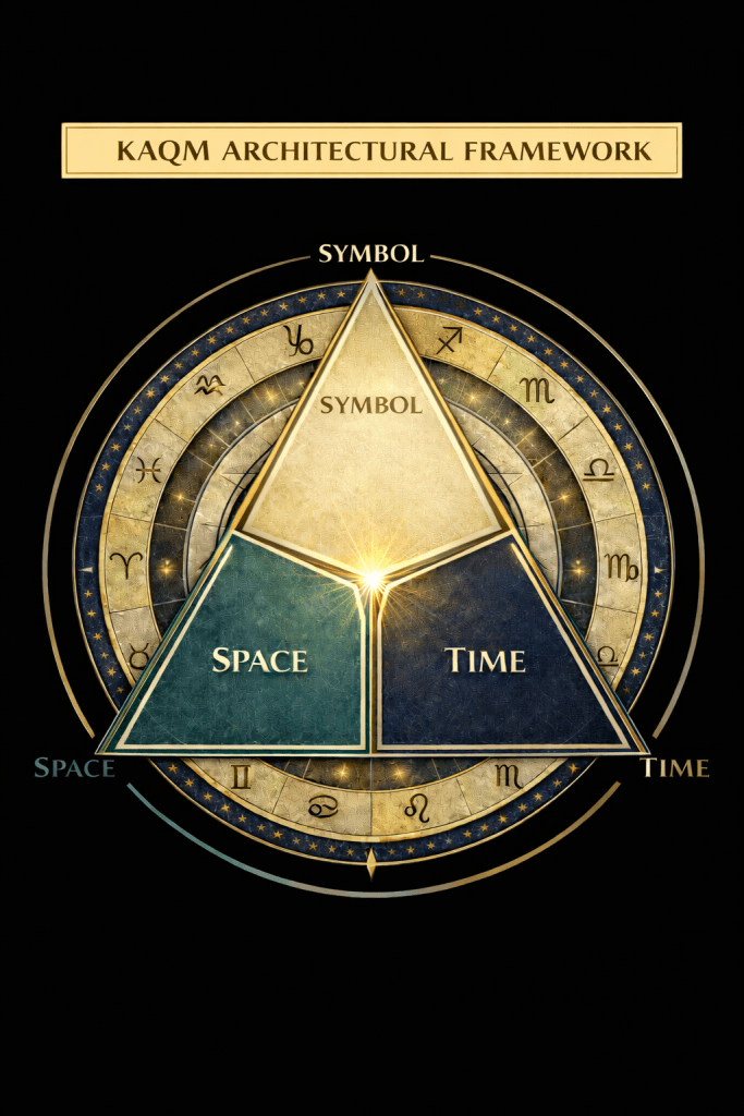 KAQM is a five-phased interpretive method grounded in a three-dimensional model of lived experience: archetype (symbol), orientation (space), and activation (time). The chart is not treated as static information but as structured geometry in motion; a kaleidoscopic emergence, that reorganizes coherence through recursive phases of development. This method identifies high-pressure convergence windows where internal structure and external timing align, increasing the probability of visible manifestation.